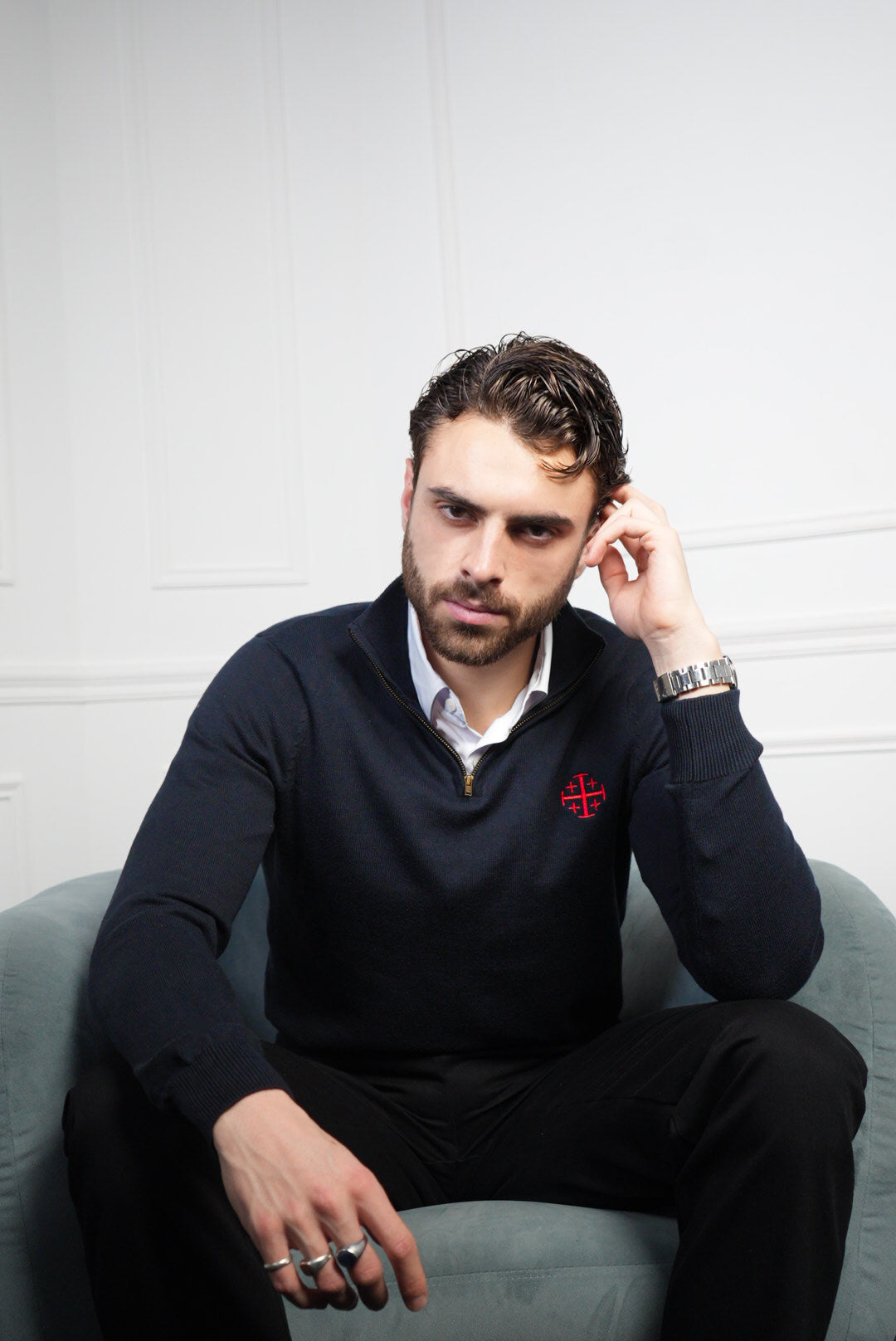 Ce pull zippé est fabriqué dans une jauge 12 qui offre un tombé propre et une texture confortable. Sa composition 50 % coton et 50 % acrylique garantit douceur, maintien et résistance au quotidien.