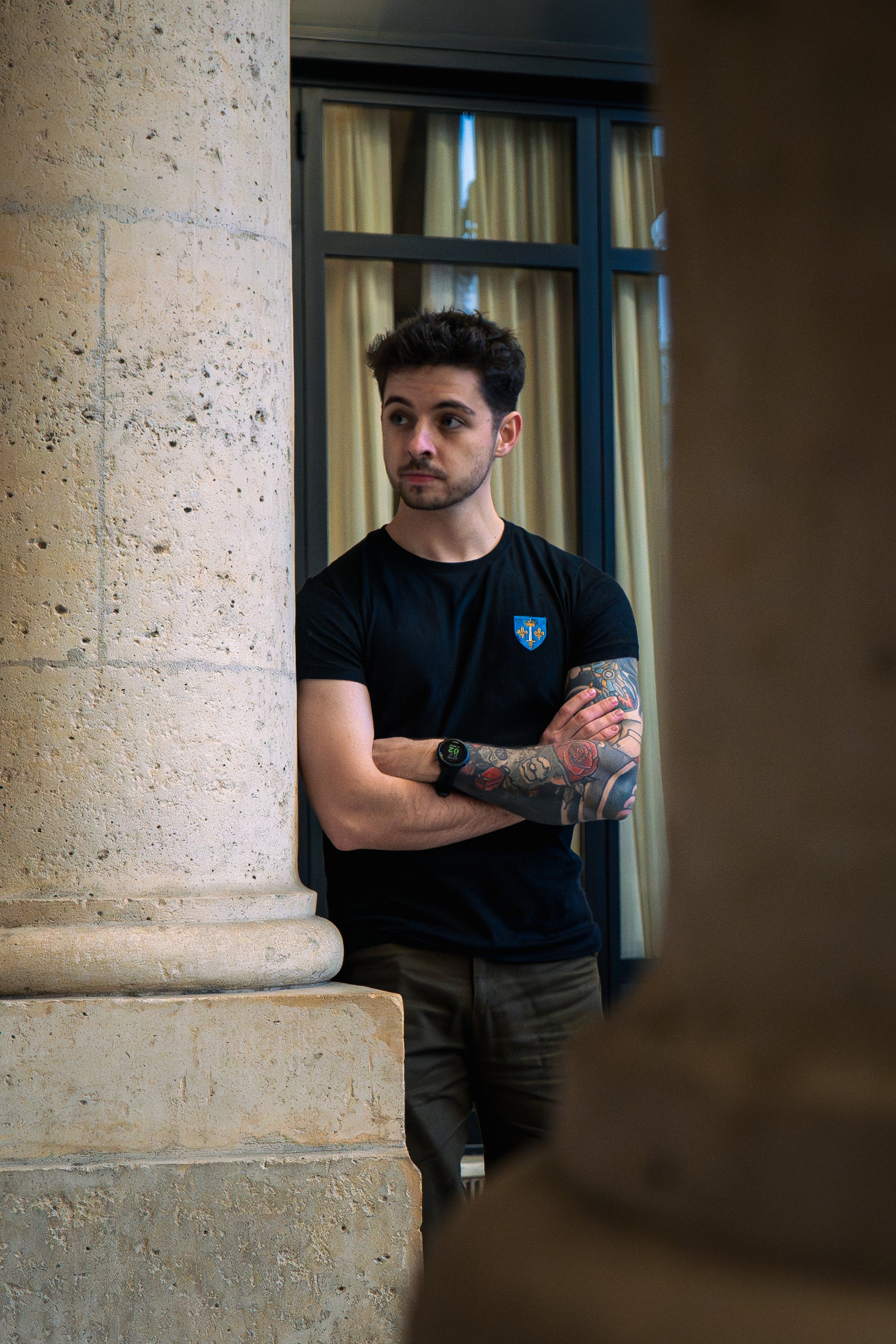 Pour le t-shirt noir, nous vous conseillons de choisir une taille au-dessus de votre taille habituelle.